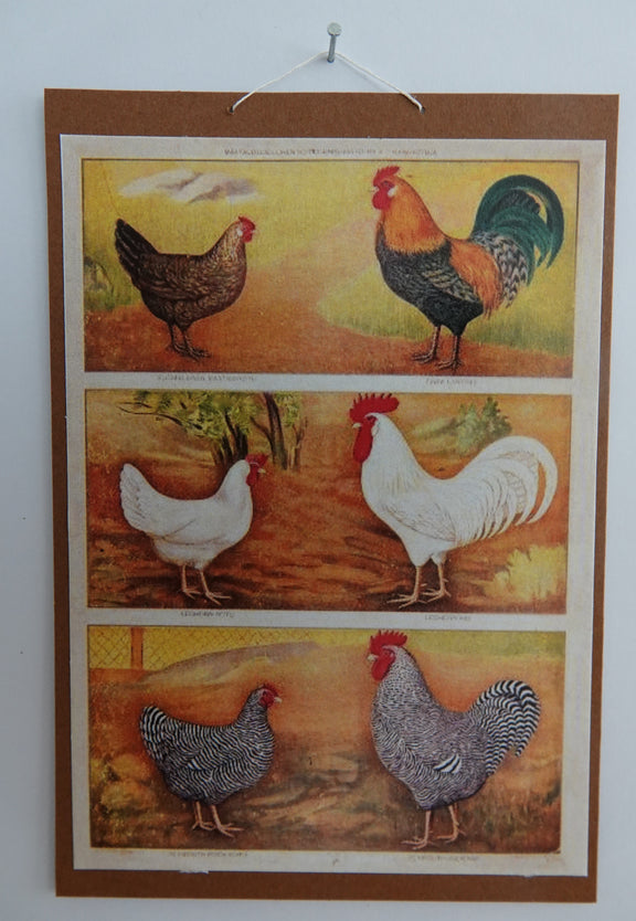 Opetustaulu nukkekotiin, kanat ja kukot